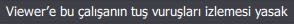 Viewer’e bir çalışanın tuş vuruşlarını izlemesi yasak olsa, vurulan tuşlar ile çalışma sekmede engellenecek ve tuş vuruşları dışarıya aktarılamaz.