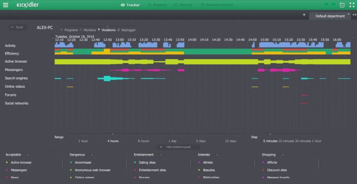 O sistema Kickidler inclui o componente keylogger, que é capaz de registrar todos os toques de tecla dos usuários.