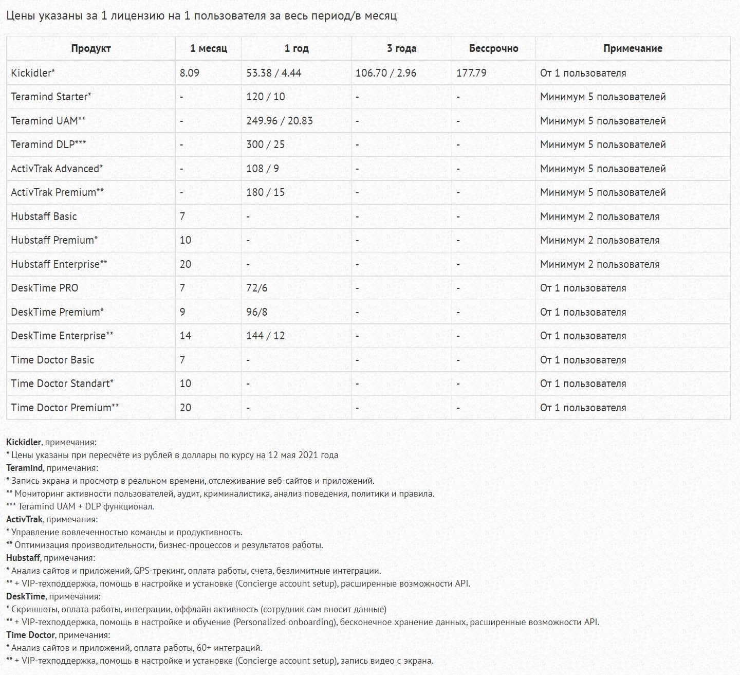 Сравнить разные решения бывает достаточно сложно – тем более, что почти у всех продуктов отличаются условия распространения и функционал. Чтобы упростить вам эту задачу, мы подготовили масштабное сравнение цен на системы учёта рабочего времени: