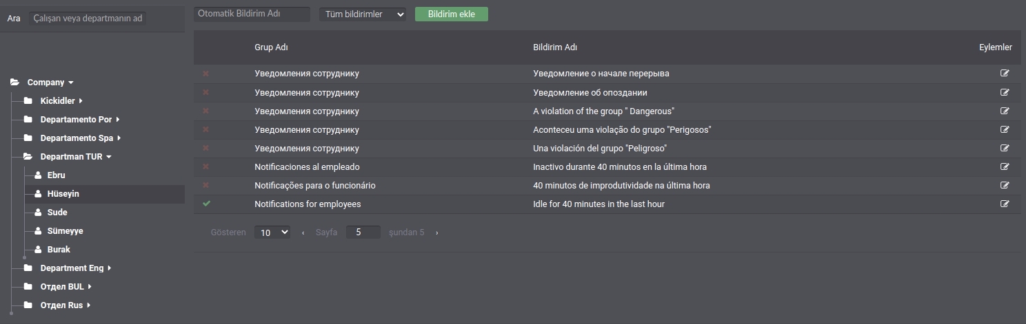 Çalışanlara ve departmanlara bağlı olan otomatik bildirimler